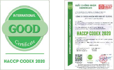 Được cấp ISO 22000, HACCP và nhiều chứng nhận uy tín khác