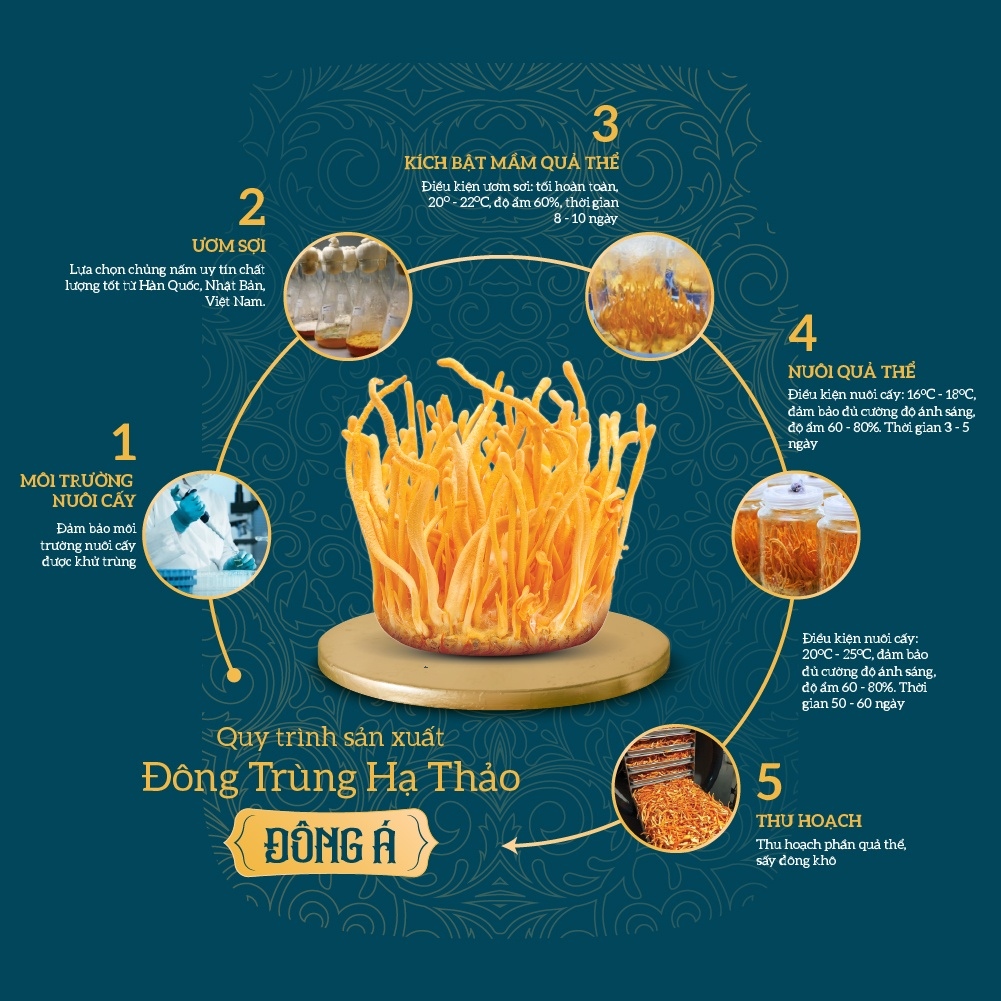 • Đông trùng hạ thảo Đông Á được sản xuất từ kết quả nghiên cứu của Đề tài khoa học cấp Nhà nước – chủ trì bởi PGS.TS Trần Thị Thu Hà – Viện Lâm Nghiệp và Phát Triển Rừng Việt Nam.
